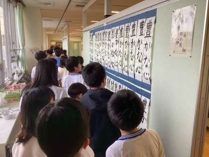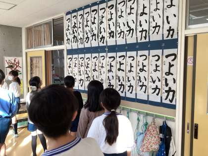 それぞれの学年の書き初めを熱心に見て周り、作品の工夫やよさをたくさん見付けました。