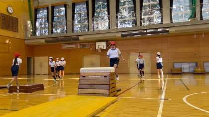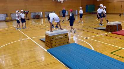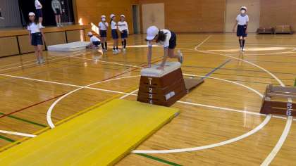 安定した跳びこしや着地のポイントを考えながら、自分に合った段数を選んで挑戦しました。