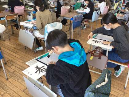 一枚書くごとに自分の課題を見付け、改善しようと練習したり、集団で学習するために思いやりをもち、一人一人が集中力を高めて取り組んだりする姿が見られました。