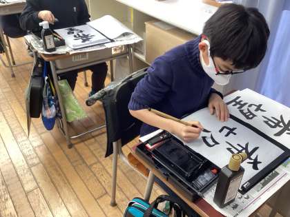 「点画のつながり」や「用紙に合った文字の大きさ」など、これまでに学習したことを振り返り、生かして取り組みました。