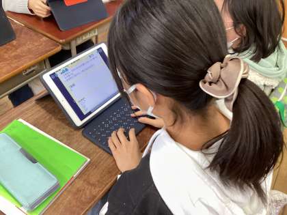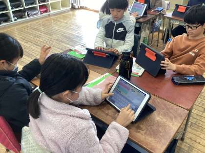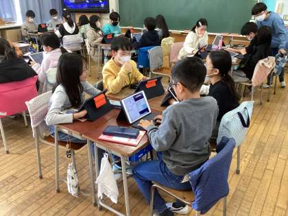 自ら調べたいことから問いを見出し、「この条件にしたらどうかな。」「○○も一緒に調べられそうじゃない。」などと、考えたことを積極的に伝え合い、探究的に学びを深めています。