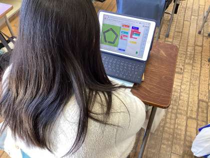 「何度曲がればいいのかな。」「曲がるのは左右どっちだ?」などと試行錯誤しながらも、どのように命令を組み合わせれば作図できるのか考えながら取り組みました。