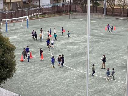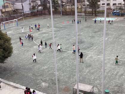 今朝は朝ランのラインが引いておらず、それに気付いた運動委員の人がすぐに引きに行ってくれました。