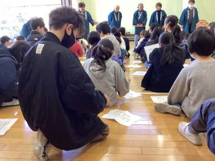笛の音に合わせ、楽しく体験させていただきました。
