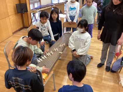最後の時間は、校歌や国歌、いつだってを歌ったり、箏を体験したりしました。