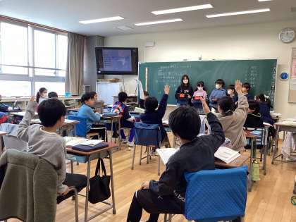 教科書や地図を参考に、土地の利用や鉄道、小学校などについてわかったことをまとめて、発表しました。一度は目にしているはずの、千歳船橋駅前の像の正体について調べた班もありました。