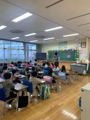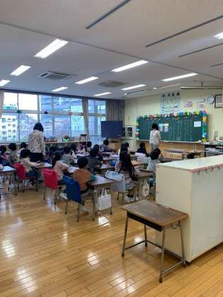 今日はひどい風雨の中での登校でした。それでも笑顔いっぱいの1年生です。教室でも先生のお話をよく聞いて3時間をしっかり過ごしました。今日は、挨拶や返事の仕方、ランドセルのしまい方、連絡帳の出し方、休み時間の過ごし方、下校準備の仕方などなど、学校生活を送る上でのいろいろなことを学びました。