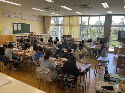 2年生から6年生の給食が今日から始まりました。教室を訪ねると、どの教室も笑顔いっぱいで、よく食べていました。「船橋小学校の給食は美味しい!!」の声がどの子どもからも聞かれました。