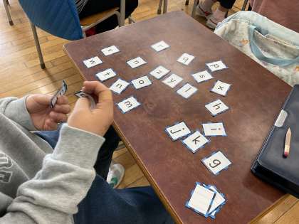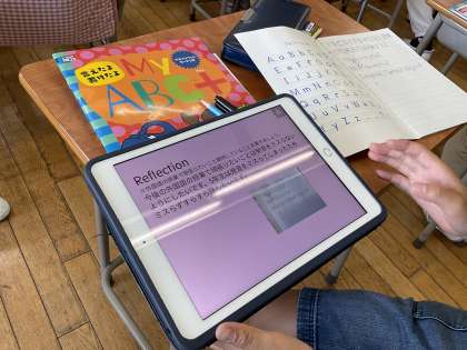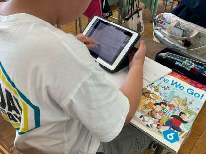 5、6年生の外国語の学習は専科の教員と共に学習を進めています。6年生は、アルファベットの学びからスタート。この1年間、特に意識して頑張りたいことも振り返りました。