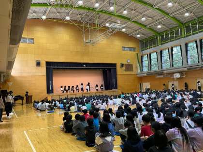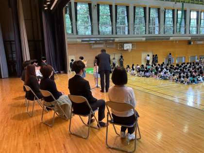 4月26日金曜日の5時間目に離任式が行われました。10名の先生方がいらっしゃいました。どの先生方からもあらためて船橋小学校の子どもたちの良さをお話していただきました。懐かしい先生方に会えた子どもたちは、集中してお話を聞き、一生懸命に離任式の歌や校歌を歌いました。