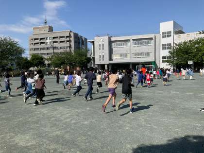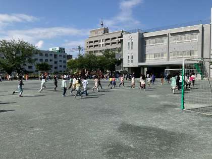 連休前の「ランニング」の様子です。8時20分から8時30分まで、準備や整理体操も含めて自分のペースで走ります。走り終わった子どもたちは爽やかな笑顔です。教室で、各々「ランニングカード」に記録しています。