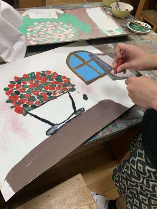 5年生の図工です。ベゴニアが素敵に見えるように、材料や道具、風景の組み合わせを考えて描いてきました。いよいよ仕上げの段階です。描き終わった子どもたちは、友達の作品を観て、良いところや見似ているところ、違うところなど紹介するカードをロイロノートに書きました。