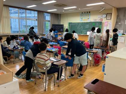 高学年の児童が、学校生活がよりよくなるために日常的に委員会活動をしています。月に1度集まって、1ヶ月の反省をして次に繋げたり、次の計画や準備をしたりしています。異学年で協力しながら話し合い、進める姿が見られます。