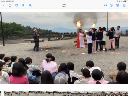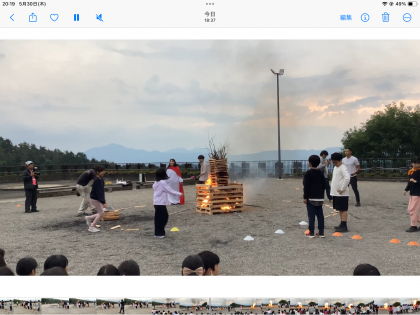 川場村の火の神様(校長先生)から、友情の炎、盛り上がりの炎、メリハリの炎が灯され、みんなと仲良く、楽しいときと静かにするときのメリハリをもって盛り上がり、最高のキャンプファイヤーができました。
