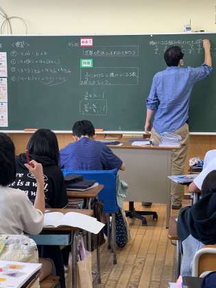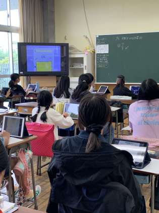6年生の算数です。既習事項を振り返り、本時の学習のめあてをしっかりともって学習に取り組んでいます。学習内容によって、タブレットを活用して自分の考えを書き、書いたものを提出して一瞬にして共有したりもしています。