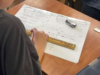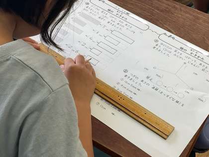 2年生は算数で「長さ」の学習をしています。ものさしを正しく使う習熟を図っています。
