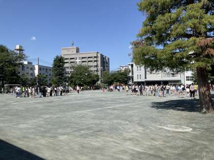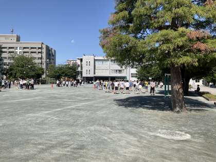 6月のあさスポは、長なわ跳びです。元気な掛け声と共にクラスごとに長なわ跳びに取り組みました。1年生の縄は、6年生が回してくれます。