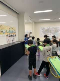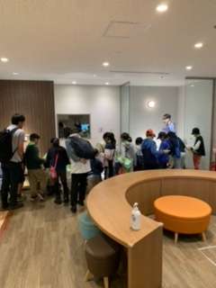 虹の下水道館に到着。3つのグループに分かれて見学をしています。
