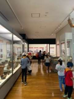 バスの中では、ガイドさんが世田谷区のいろいろやことを説明してくださいました。郷土資料館と代官屋敷に到着、3つのグループに分かれて説明を聞きながら見学をしました。写真は、資料館を見学中の様子です。