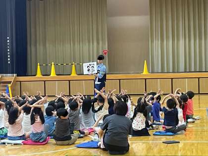 PTA校外の保護者にお手伝いしていただきながら、成城警察署の方々にご指導いただいて「安全歩行訓練」をしました。最後におまわりさんから、今日の学習の振り返りをクイズ形式で確認していただきました。保護者の方の審判はみんな合格。合格証明書をいただきました。ここでの学びを日常的に意識し、交通安全で過ごしてほしいと思います。