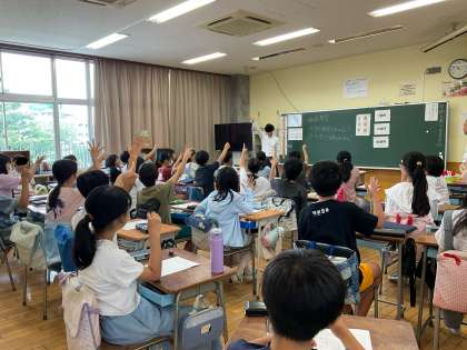 6年生の教室に税理士の方をお招きし、「租税教室」を行いました。なぜ税金を集めるのか、どうやって集めるのかなどについて理解を深めました。公平な税金の集め方については、想定された設定からまず自分の考えとその理由をもち、グループで活発に話し合いました。
