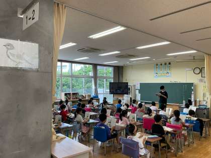 1年生の教室からリズムよく音読する声が聞こえてきました。「おむすびころりん」のお話です。教科書をしっかり持って音読し、リズムのよさを味わいました。思わず踊り出しそうです。