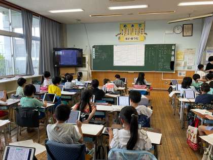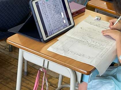 2年生の国語です。身のまわりで見つけた「いいな。」「すてきだな。」と思うもののことを文章に書いて友達に知らせます。見つけたもののよさが、友達に伝わるように、組み立てを考えて文章を書いていきました。