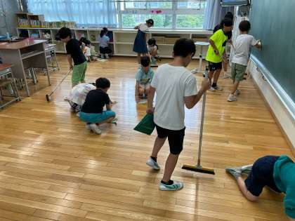 1学期を終えるにあたって、教室をきれいにしました。隅々まで掃除をし、清々しい教室になりました。写真は、2年生と3年生の様子です。