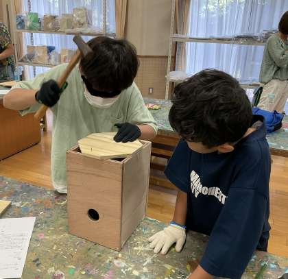 サマースクール実行委員会の保護者の方を中心に、今年もサマースクールを開催していただきました。今日と明日で8つの講座が開かれます。写真は、「野鳥の家やえさ台をつくろう」と「プログラミング教室」の様子です。どちらの講座でも自分たちでつくる喜びに溢れていました。