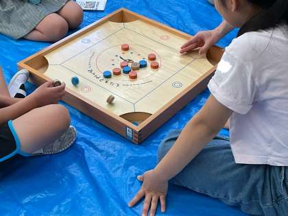 「『カロム』で遊ぼう」の講座では、ビリヤードとおはじきの要素を併せ持ったボードゲームに作戦を練りながら楽しくゲームに参加していました。「アイスクリームをつくろう」の講座では、アイスクリームを作る方法を知り、自分のアイスクリームづくりに夢中になって取り組んでいました。