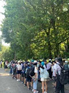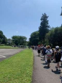 道路状況もよく順調に進み、大谷川公園に到着しました。木陰は爽やかです。これからお弁当場所まで向かいます。