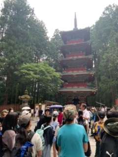 いろは坂をのぼってホテルに向かいます。雨は止みました。みな元気いっぱいです。