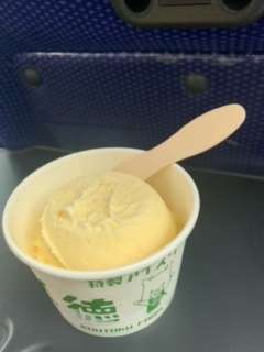 足尾銅山の見学の後は、バスで光徳牧場へ。今日は、ハイキングや見学のときには雨が止んでいます。光徳牧場では、濃厚なバニラアイスクリームを食べました。