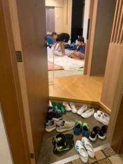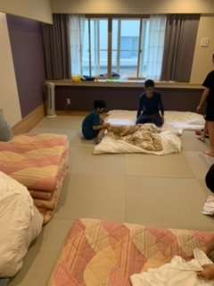 朝食前に朝の支度や荷物整理をしました。生活班の友達と協力し合って、しおりの予定よりも早く行動ができています。