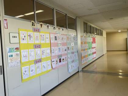 図書室前には、子どもたちからの「おすすめの本」が掲示されています。読書の秋には程遠い連日の暑さですが、2学期にも読書に親しんでほしいと思います。