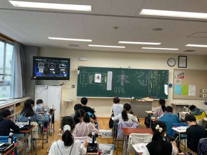 3年生から始まった「毛筆」の学習です。今日は、毛筆を利用して、左はらい 右はらいの書き方への理解を深めました。筆使いに気をつけながら「木」を書きました。小筆を用いて名前も練習しています。