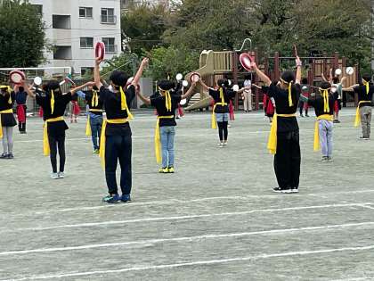 明日は運動会です。体育着は持ち帰っているので、動きやすい普段着で明日のリハーサルを行いました。写真は、1、2、3年生の様子です。最後の練習、思いっきり身体を動かし、笑顔で演技する子どもたちでした。
