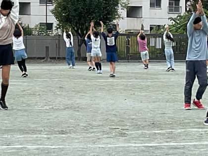 写真は、4、5、6年生です。4、5年生は音楽に合わせて、軽快な表現に仕上がっています。6年生は、最後の運動会。今までの思いが込められた表現に圧倒されます。今日のリハーサルでは、どの子どもも今までの練習の中で1番上手くいったという顔をしています。きっと明日はそれ以上の力を発揮することと思います。チャンスにチャレンジしている子どもたちです。少し肌寒い天候です。上着を持ってくるように再度アナウンスをしました。