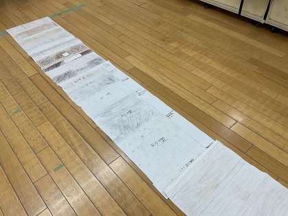 6年生の理科です。船橋小学校のボーリング検査の結果を見て気が付いたこと、わかったことを交流し、考察しました。地層を形成するものについて知りました。学年4クラスで、単元での交換授業として、地層についての学習を1組と3組の担任が、てこの働きの学習を2組と4組の担任がT1として行なっています。