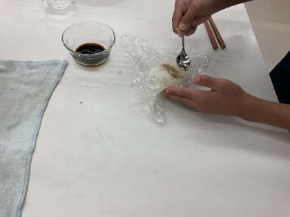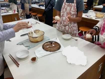 5年生の家庭科で調理実習をしました。ガスでご飯を炊きました。炊き方をしっかり学びどのグループも焦げなく上手に炊けました。炊き上がったご飯でおにぎりを作りました。みそ、醤油、塩、梅を選んでおにぎりに塗り、フライパンで軽く炙って焼きおにぎりにしました。