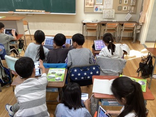 社会科の「安全なくらしを守る」では、タブレットを使い、みんなで意見を共有しながら学習を進めています。けいさつの人はどんな仕事をしているか、またどんな工夫をしているのかということについて調べ学習をしました。