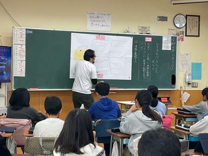 6年生の国語では、「相手や目的を明確にして、推薦する文章を書く」学習をしています。校内研究として取り組んでいるので、今日は先行して4組の授業を3組担任が行いました。考えを整理するための思考ツールの使い方を知り、フィッシュボーン図を用いて「推薦したいもの」「推薦する理由」をより具体的にするために根拠を書き加えていきました。
