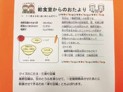 今日の給食 11/20(水)