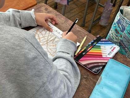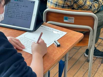 4年生は理科で季節ごとに、自分の決めたサクラの木を観察しています。写真でも記録しています。今日は、実際の観察と記録した写真をもとに、観察カードに絵と文字で記録しました。