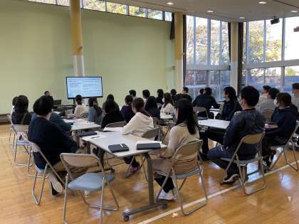 多目的室で教職員の服務自己防止研修を行いました。教育公務員としての自覚をさらに徹底して高めていきます。