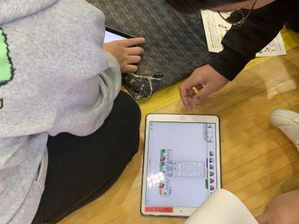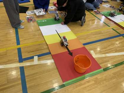 都内の公立学校を対象に、多様な体験活動の機会が提供される東京都教育委員会による「笑顔と学びの体験活動プロジェクト」があります。それに応募して、6年生がプログラミングに取り組みました。ロボットがゴールに近づいていって、ボールをシュートできるように、プログラムやロボットを工夫していきました。