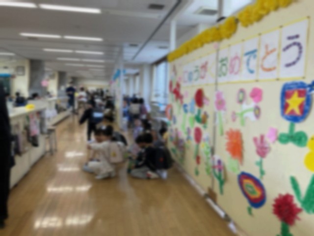 1年生は、しばらくの間、同じ方向の子どもたちと教員で下校をします。教室前にコースごとに並んで出発です。