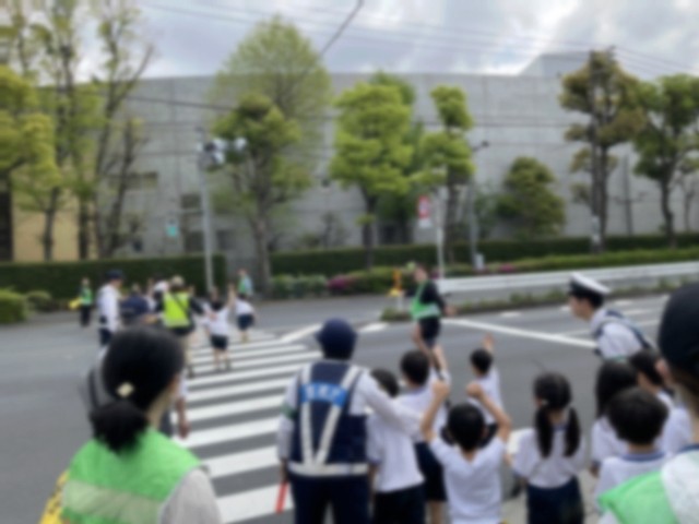 1年生が交通安全教室を行い、道路での安全な歩行の仕方を学びました。成城警察署の警察官の方にご指導いただき、PTA郊外の保護者の方々にお手伝いしていただきました。学校の南門から成城警察北交差点の信号を渡る実技を行いました。帰校後は警察の方からクイズを出題していただき、安全な歩行の仕方のまとめをしました。全員合格し、証明書をいただきました。日常生活の中でも安全に道路を歩行する意識を高めました。