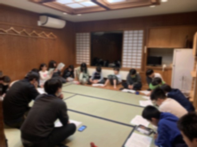 ナイトハイクから帰ってきてから、バナナを食べました。最後に室長会議を行い、今日の反省や明日の活動の確認をしました。もうすぐ就寝時間です。明日の天気が気になるところです。