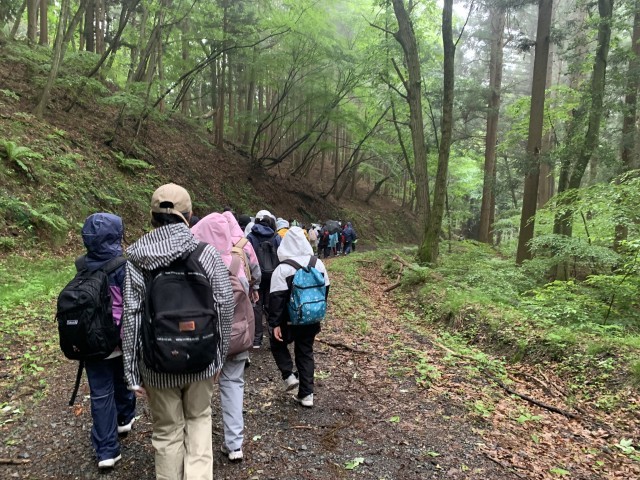 小雨でしたが、傘をさすほどの強い雨ではありません。ハイキングコースはきついものではないので、レインコートを着て予定通り出かけました。晴天とはまた違った自然を味わいました。